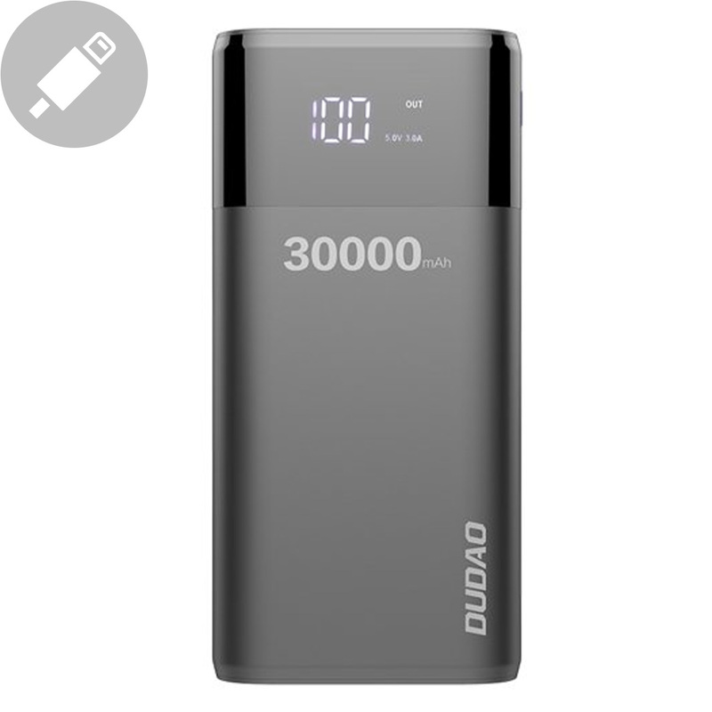 Dudao Powerbank to rozwiązanie dla osób, które potrzebują dużej mocy, ale nie chcą martwić się o rozładowanie swojego urządzenia w trakcie dnia. Dzięki pojemności 30000mAh, z łatwością naładujesz swoje smartfony, tablety, a nawet laptopy. Ten czarny powerbank posiada dodatkowo wyświetlacz LCD, by zawsze mieć kontrolę nad stanem naładowania urządzenia. W zestawie znajdziesz 4 złącza wyjściowe, zgodne z najpopularniejszymi typami kabli: Lightning, micro USB-B, USB-C i USB-A.