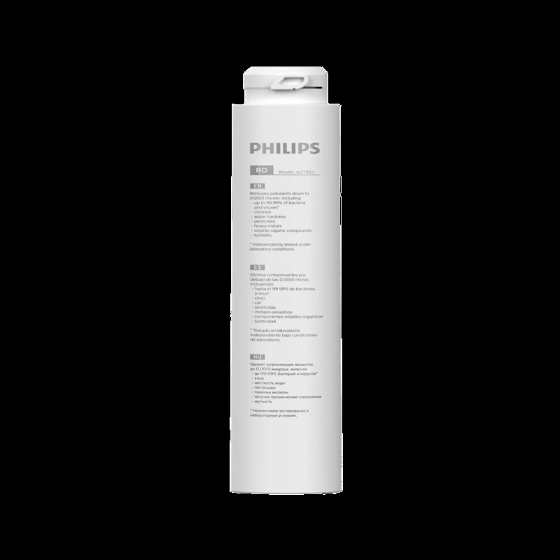 Membrana odwróconej osmozy AUT861/10 do użytku z zestawem PHILIPS AUT3268 Ciesz się zdrową wodą Filtr membranowy z odwróconą osmozą (RO) skutecznie usuwa metale ciężkie, bakterie, wirusy, pestycydy, pozostałości chloru i antybiotyki, a także zmniejsza twardość wody, eliminując wapno. Zapobiega wtórnym zanieczyszczeniom Zalecana trwałość filtra: 24-36 miesięcy Membrana osmotyczna 75 GPD (do 284L/dobę) Dokładność filtracji: 0,0001 Ciśnienie wody na wlocie: 0,15-0,4 MPa bar Temperatura wody na wlocie : 5-38°C Jakość wody wlotowej: Miejska woda z kranu