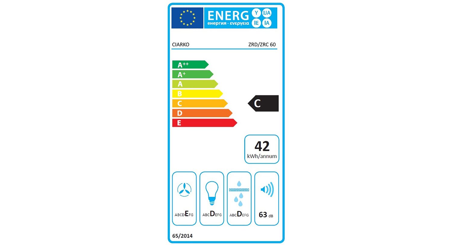 Roczne zużycie energii wynoszące jedynie 42 kWh sprawia, że eksploatacja okapu podszafkowego CIARKO ZRD 60 czarny jest nie tylko komfortowa, ale także ekonomiczna. Możesz dbać o środowisko i jednocześnie oszczędzać na rachunkach za prąd bez utraty jakości pracy urządzenia.