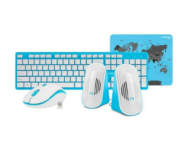 Zestaw bezprzewodowy klawiatura + mysz + głośniki + podkładka Natec Tetra niebiesko-biały